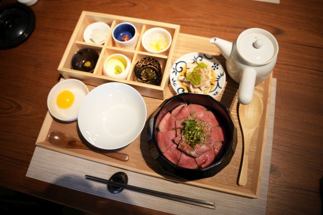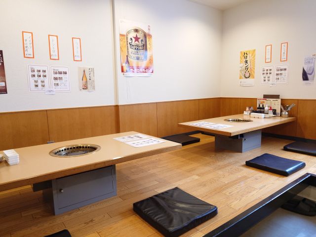 オープン時間に入店、左側の小上がり席に入ります。焼肉用コンロありますが今日は通常の定食を頂きましょう!