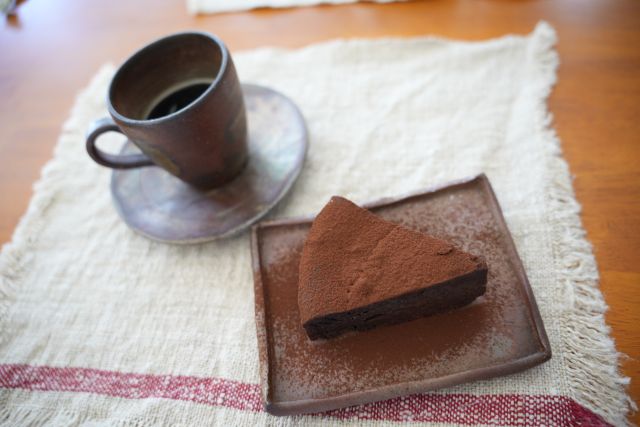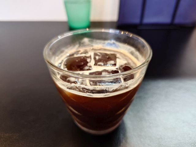 食後にはアイスコーヒーを頂きながら暫しまったり...伊島町(県営グランド西)にあった老舗パン屋”ボンヌ・マリー”さんの大将が当店のオーナーになります! パンはないですが名物焼き菓子「木菓」は店内で焼き上げられ、販売をされていました!!