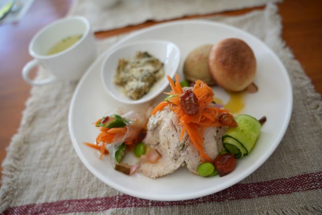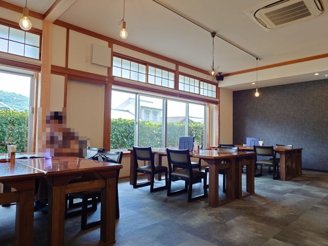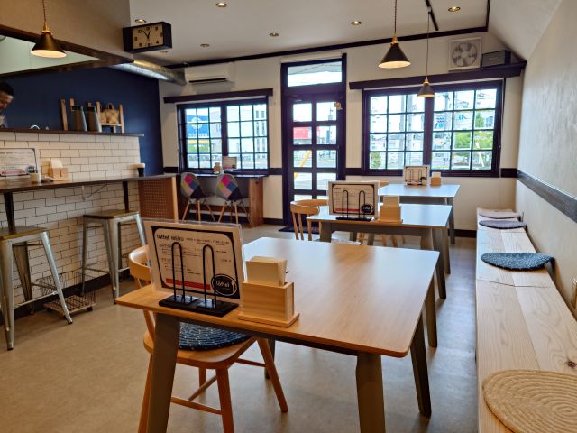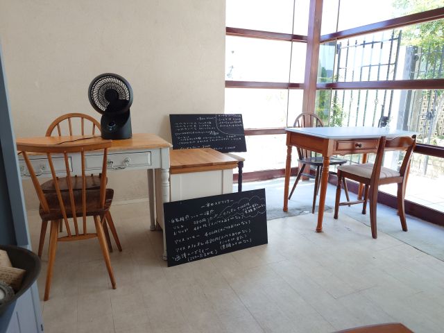 店内はスクエアー空間、シンプルなテーブルが5席、先客さんは焼き菓子を買い求められていました!