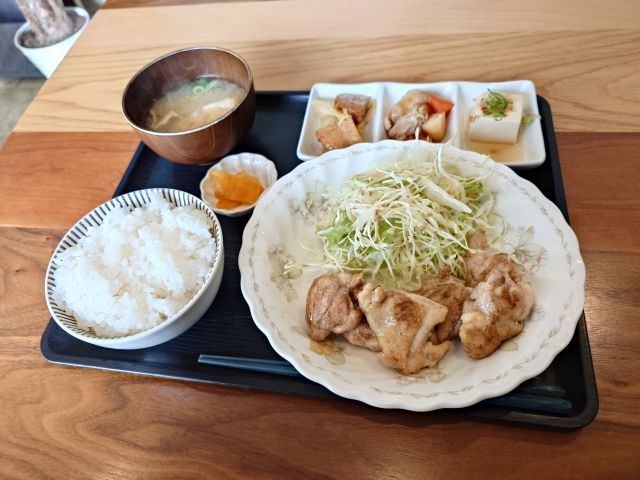 今日のメインは鶏肉のソテー、中サイズの鶏肉が6切れ...見た目よりボリュームあります!。シンプルな味付けで鶏肉本来の旨さを活かしていますね、ご飯が進みます。小鉢も家庭的な味わいで美味しく頂きました^^