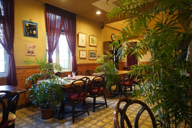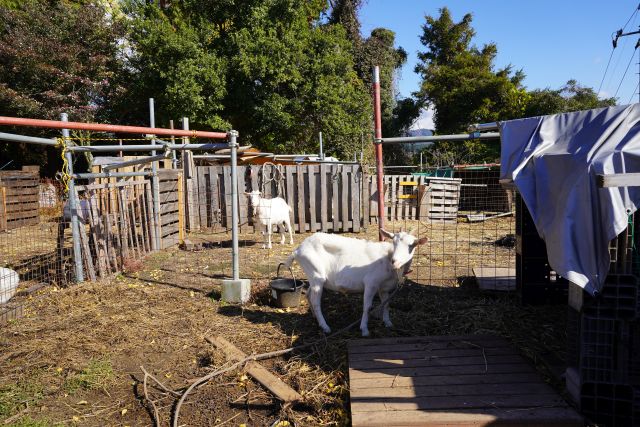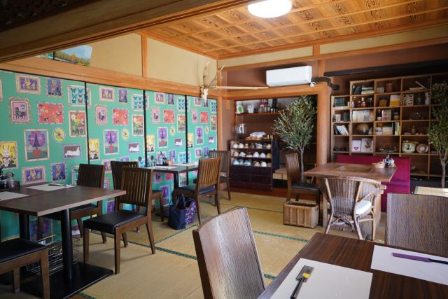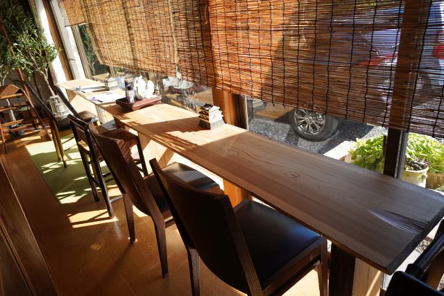 玄関で靴を脱いで入店、座敷二間にテーブル配置、縁側にはカウンター席...放し飼いのヤギ・鶏をのんびり眺めるならカウンター席がお勧めです。