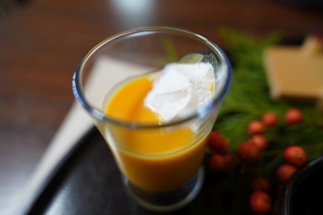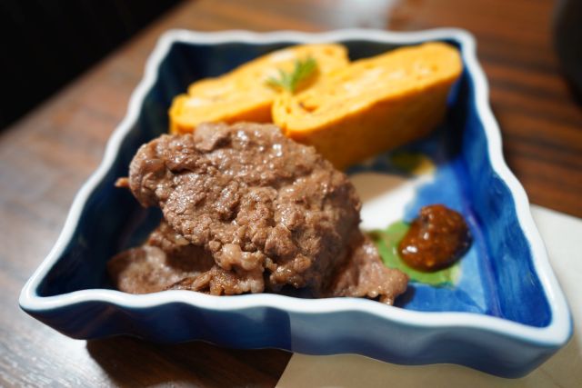 小鉢はどれも上質ですね、玉子焼き・小松菜と春雨サラダが特に好みの味わい、ピーナッツかぼちゃのスープも美味でした。追加注文した竹の谷蔓牛は黒毛和牛の原種、千屋牛・松阪牛・神戸牛の元になった和牛ですね、赤身が美味しく肉本来の味を楽しめました。