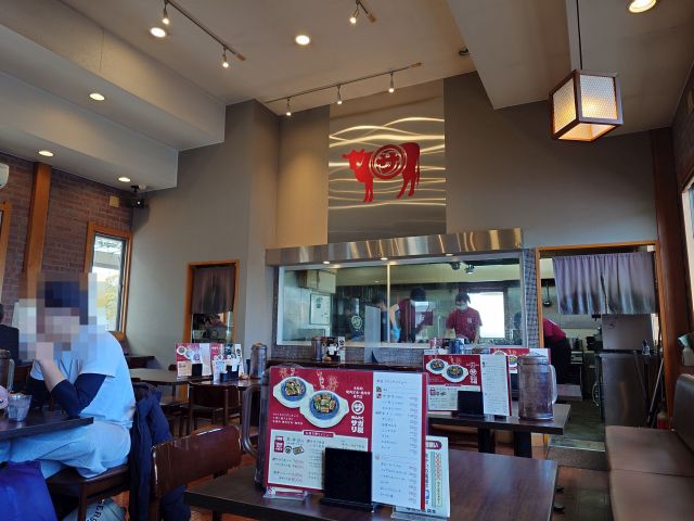 入り口左手の券売機で食券購入、奥のテーブル席に入ります。焼き場は一番奥ですね、スタッフさんが手際よく焼いてくださいます。