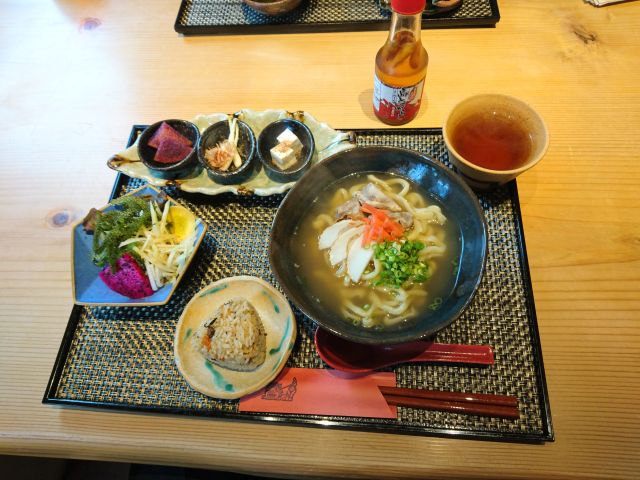 注文はミックスフライ定食(800円)、待つこと10分弱で配膳、想像よりボリュームありますね。ソーキ・紅芋コロッケ・チーズボール・カキフライ・エビフライの構成です!