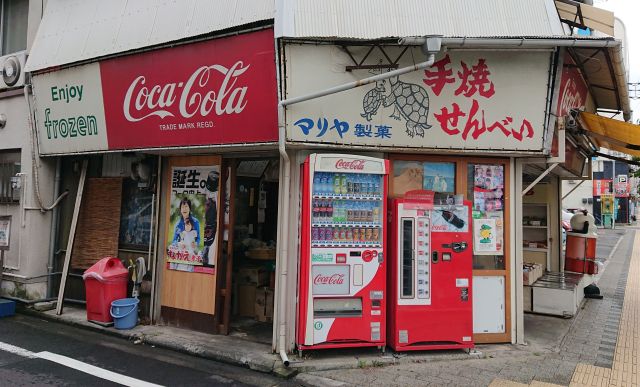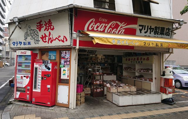 今治 大島のさだめ食堂さんで美味しい定食を頂いてから松山市に移動、こちらにはダブルCoca-Cola看板を掲げる老舗の製菓店があります、創業57年になるマリヤ製菓さん、その素晴らしい佇まいに暫く見惚れます^^