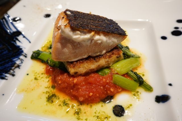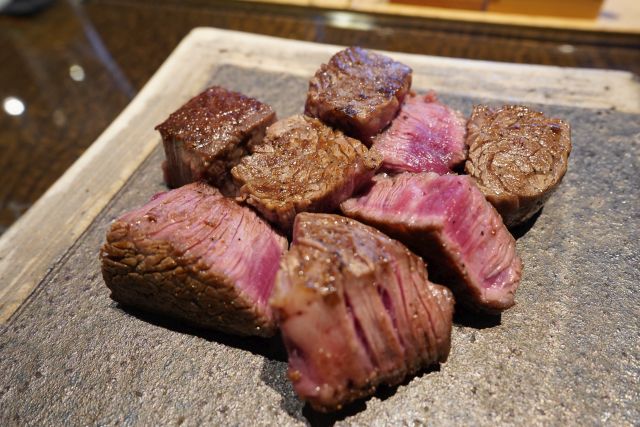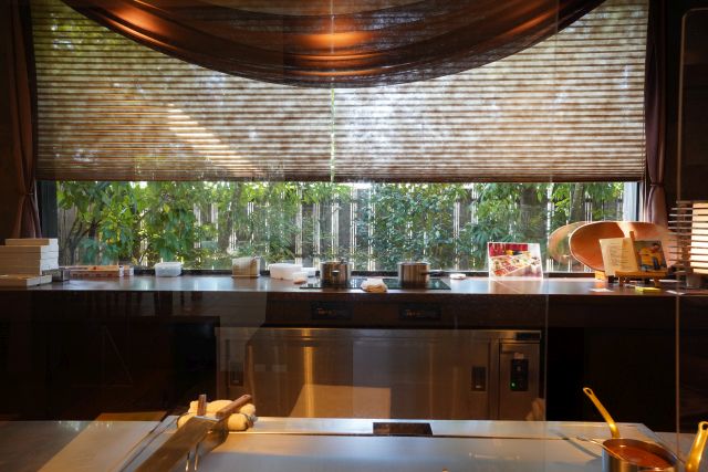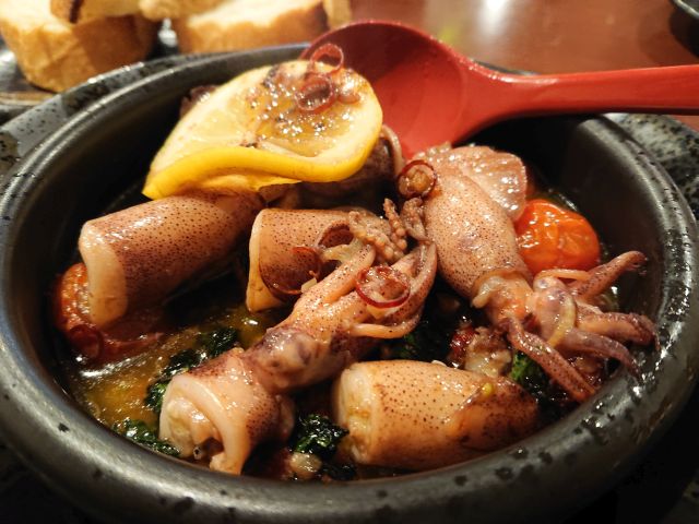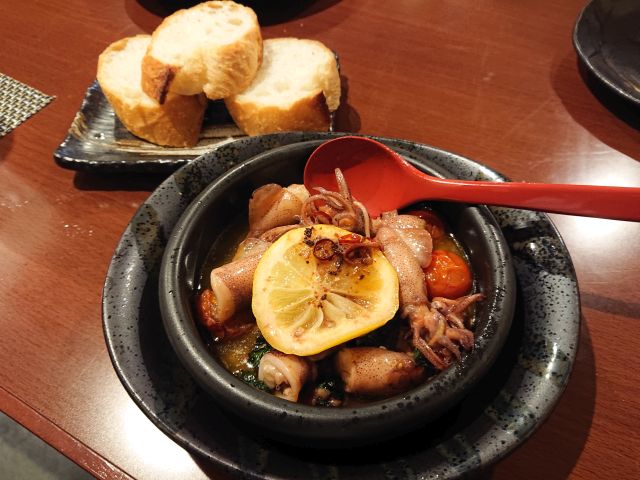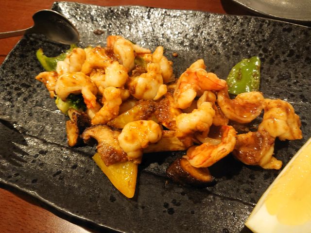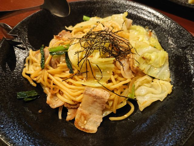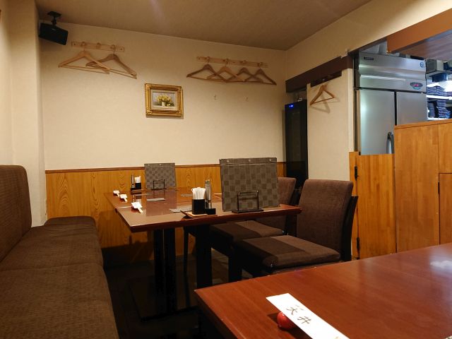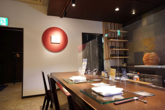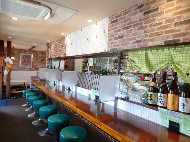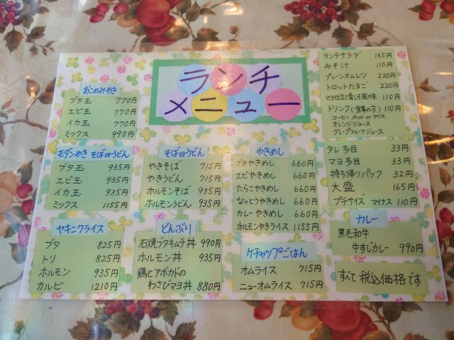 店内は横長空間、中央が厨房とカウンター席、両脇がテーブル席になります。鉄板焼もされていますので夜は飲み会利用も多いのでしょう。