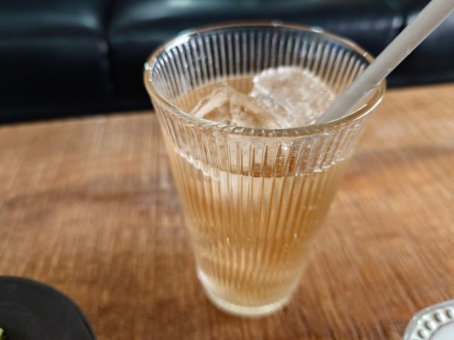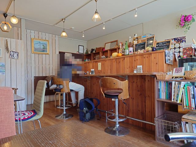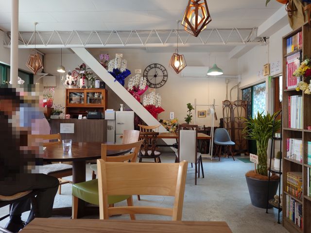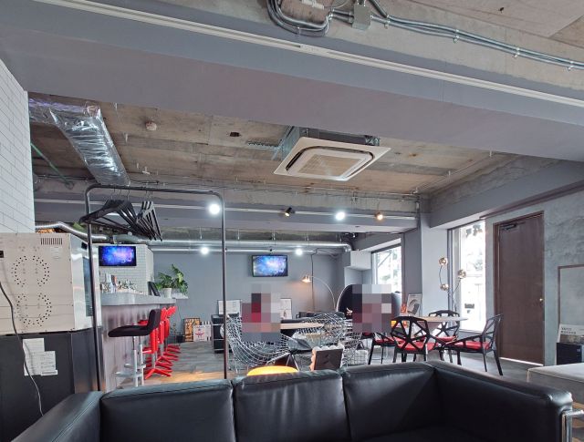内階段を登って二階へ...扉はなく店内直行、細長い空間ですね。テーブル席メインで北側にはソファー席もありました。