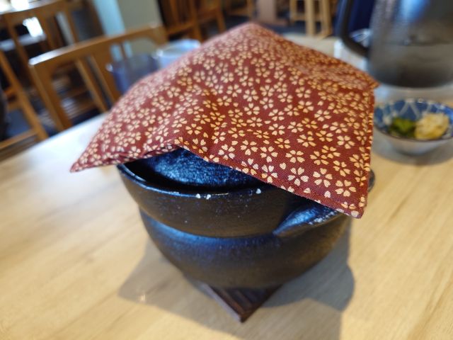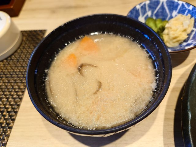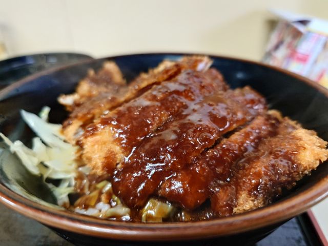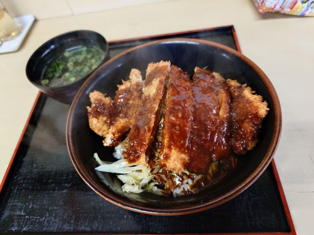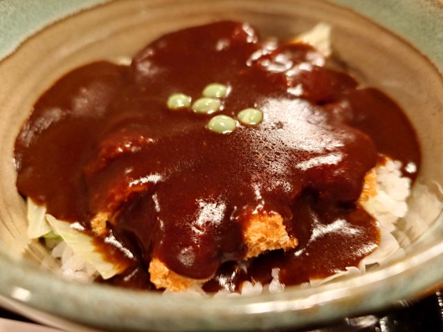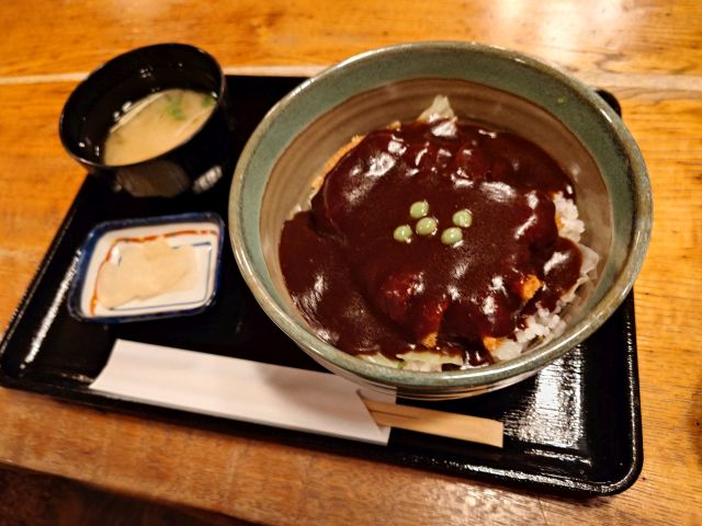 注文はドミグラスソースカツ丼 並(ヒレ/1150円)、待つこと15分少々でやって来ました。カツ丼の他に味噌汁と香の物が付いてきます。
