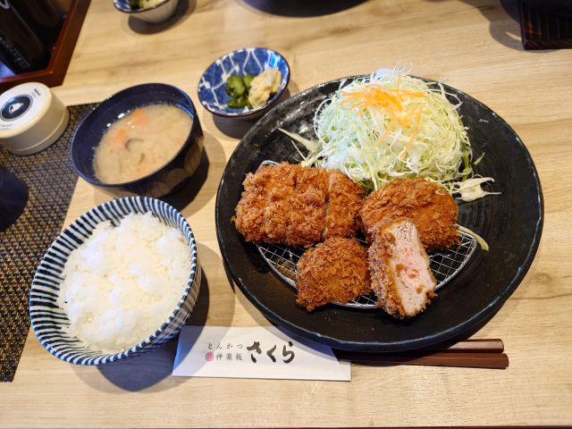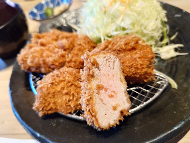 見た目でソース濃いのが分かります^^ 粘度しっかりのソースは見た目通り濃厚でカツにしっかり纏わりつきます。ヒレカツは脂身皆無で健康的な味わい、厚みはそれほどありませんがソース濃いので全体的な重たさを感じます。上のグリーンピースが少し濃さを和らげてくれました!!