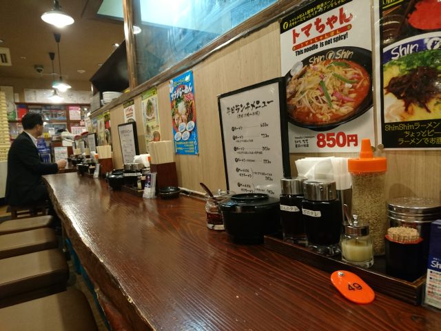 店内は狭いながらも効率的なテーブル構成、向かい合うカウンター席ですが半透明の仕切りがあって気を遣いません。