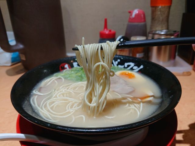 打ち合わせ前の腹拵えで伺ったのは天神駅からほど近い「元祖赤のれん 節ちゃんラーメン」さん、界隈でも人気のラーメン屋さんです。13時過ぎで列び5名さん...おひとり様なので空きのカウンター席へ優先で入れて頂きました。
