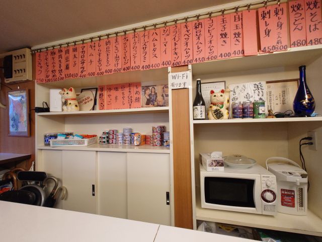 店内は立ち飲みオンリー、カウンター3ラインありますのでかなりの人数を収容できると思います。場所柄、お客さんはジモティーさんメインですね。メニューがかなり多いですね、家庭的なおかず系も多数ラインナップされています。