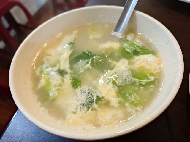 蛋花湯はたまごスープですね、青菜も入っていますが絶妙な塩加減で美味しいです、炒飯のお供にベストでした(*^^*) 個室で同席した方々はジモティーさんですね、場所柄観光客も多いと思いますが地元民にも愛される金元寶炒飯さんでした!!
