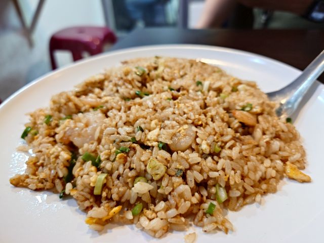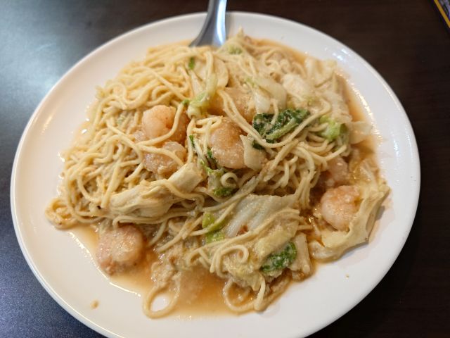 蝦仁炒麺は卵で炒められており、かなり甘めの味わい。麺は中細で具材は海老と白菜、白菜のエキスが滲み出して、一層甘くなっている印象。私的にはソースや醤油系のシャキッとした味わいの方が好みです。