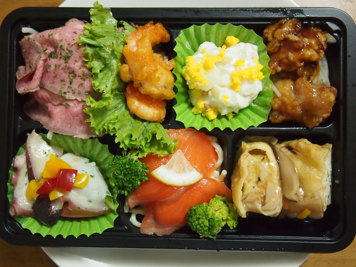 今回購入したのは「18品目よくばりプレート海老チリ 864円」「油淋鶏 410円」、よくばりプレートは酒のアテにするには品数も多く満足できる内容です。品名にある海老チリは極僅かなので期待しないでください^^; 油淋鶏はかなり大きく食べ応え十分、甘辛い酢醤油タレが絡んでとても美味しく頂きました!!