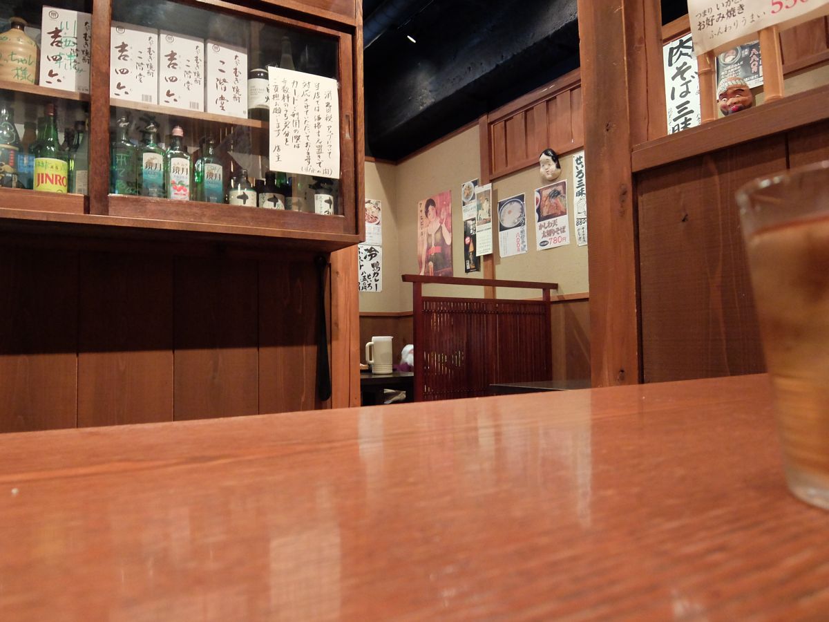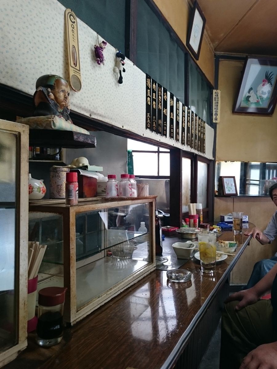 内観も素敵です、カウンター5席に四人掛けテーブル1つ、手作りと思われる小さなガラスケースに一品料理はありませんが駅前食堂によくある親密空間を形成されています。14時頃の入店でしたが、地元先達の方々が朝から酒盛りされているのでしょう、もう完全に出来上がっています。テーブルお一人の方は意識朦朧、偶に目覚めると目が据わっていらっしゃいます^^; この濃密なモワ~ンとした空気感は長く営業された食堂さんの”時の証”です!