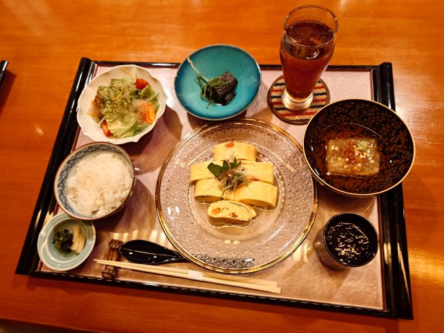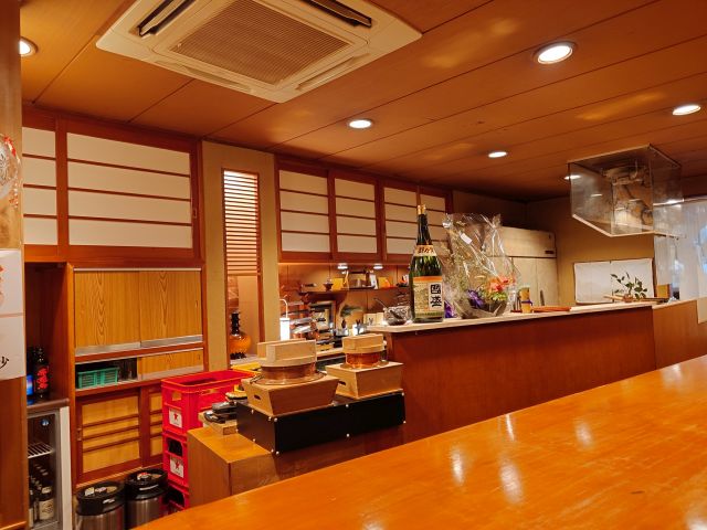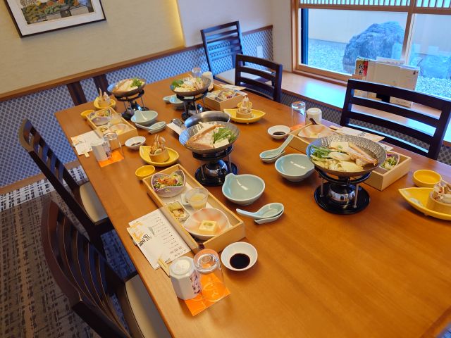 内階段を登って二階へ...靴を脱いで個室に入ります、座敷テーブルなので寛げます。繁忙期なのでどの部屋からもお客さんの声が聞こえてきます。