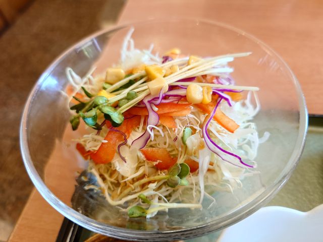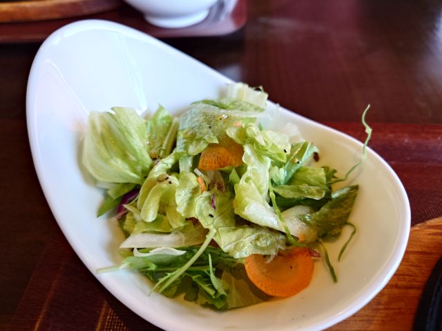 注文は「そだち焼肉ランチ(2299円)」、待つこと10分少々でやって来ました、釜炊きご飯はおかわり可能です。メインの他には吸い物・サラダ・キムチが付いています。