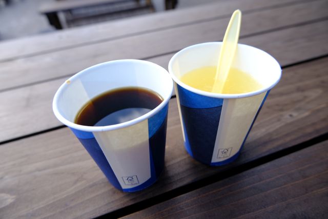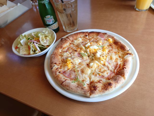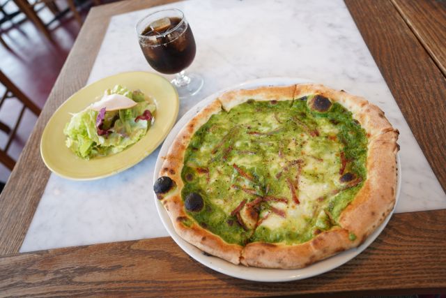 注文はマルゲリータ&珈琲、待つこと10分少々で焼き上がりました。当店のピザ生地は自家有機栽培小麦を使用、天然酵母サワードゥで発酵させた後、二日間冷蔵庫で熟成させるそうです!。