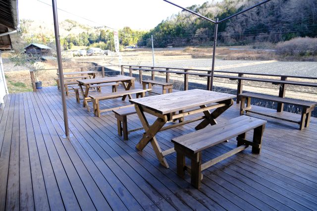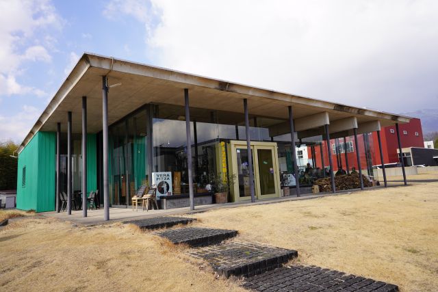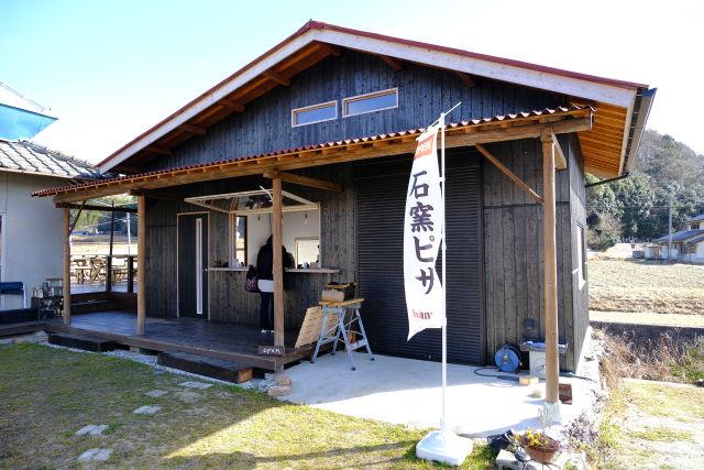 自宅横にお店をご自身で建てられています、石窯&ウッドデッキテラスも自作...凄いですね! 店頭で注文&支払い、奥の自作テラス席で頂きましょう。
