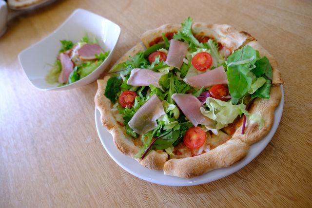 何とか二桁気温の休日、ドライブ途中でランチに伺ったのは北区御津「石窯ピザ hanare」さん、昨秋オープンのピザ屋さんです。風光明媚な山間集落の立地、手前の道はかなり狭いですね、大型四輪駆動車だときついかもです!!