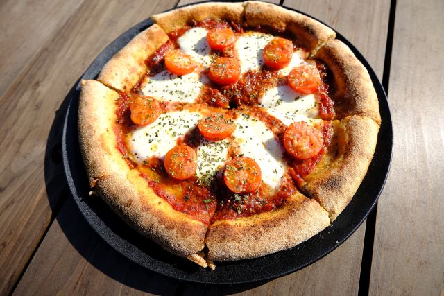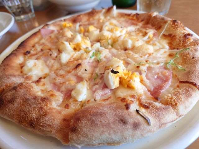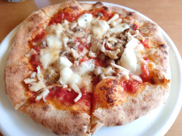 ピザの縁は盛り上がって厚みしっかり、中にいくほど薄くなって食べやすくなっています。トマトの酸味とモッツァレラチーズの風味が合わさって美味いですね、高温で焼かれているので香ばしさが素晴らしいです(*^^*)