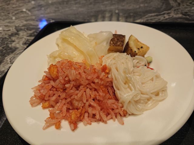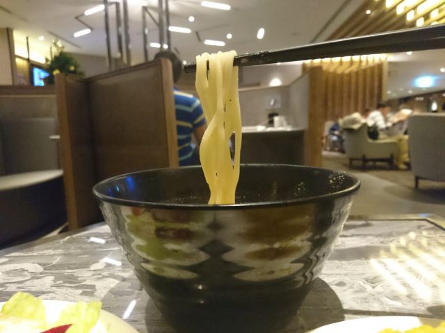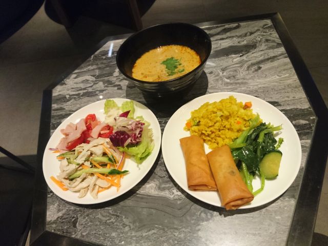 麺類や鶏肉飯を注文できるカウンターありますのでVegetable Noodle をお願いし、ビュッフェで少量取った一品料理と一緒に頂きましょう。麺はうどんほどの太さありますが、コシは全くありません^^; まぁ想定内ではありますが、麺に期待は駄目ですね。スープはあっさり醤油ベースで具材はしっかりです、健康的な味わいでビュッフェ料理と一緒に美味しく頂きました^^