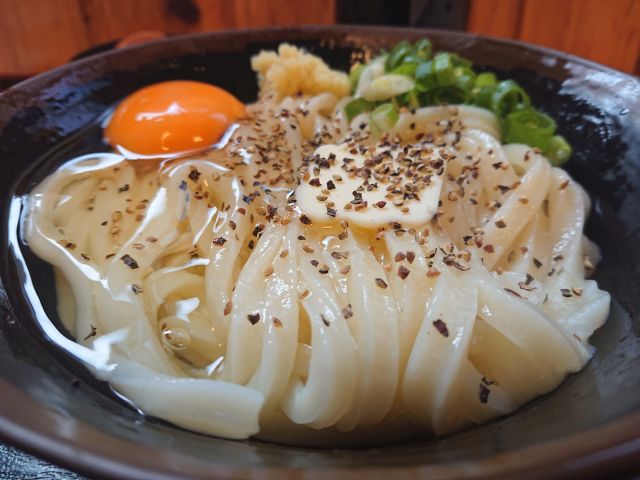 午前中の打ち合わせをサクサク済ませ、ランチに訪れたのは市街地中心部から徒歩圏内の「手打うどん 麦蔵」さん。11時2分着ですでに10名ほど列ばれていますね、さすがの人気店さんです!