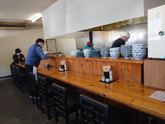 入り口の券売機で発券、スタッフさんに手渡しながらカウンター席奥から詰めて座ります。大将の俊敏な所作を眺めながらのんびり待ちます^^