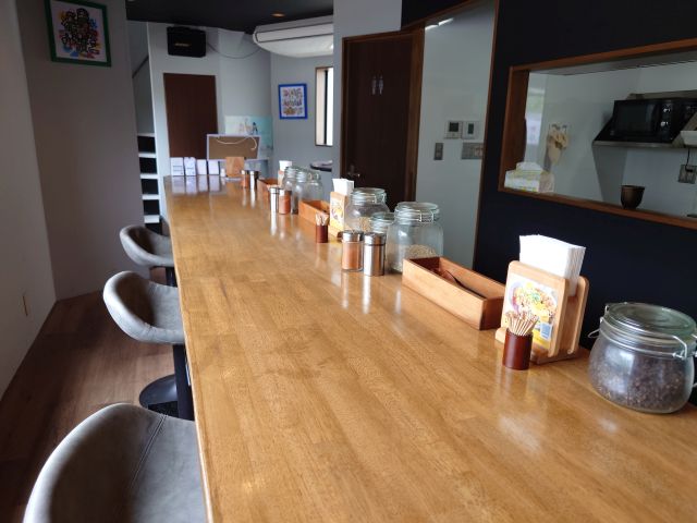 店内は奥に長い構造、カウンター席のみ6席です。おひとり様なのでカウンター席端っこに入ります、料金は前払いになります。