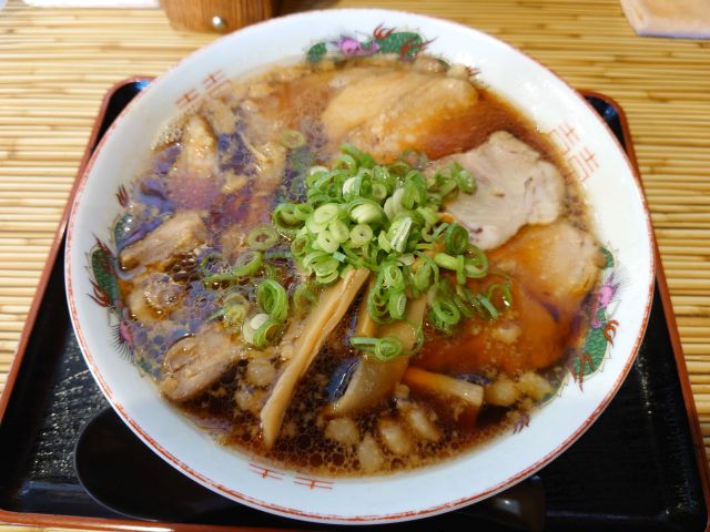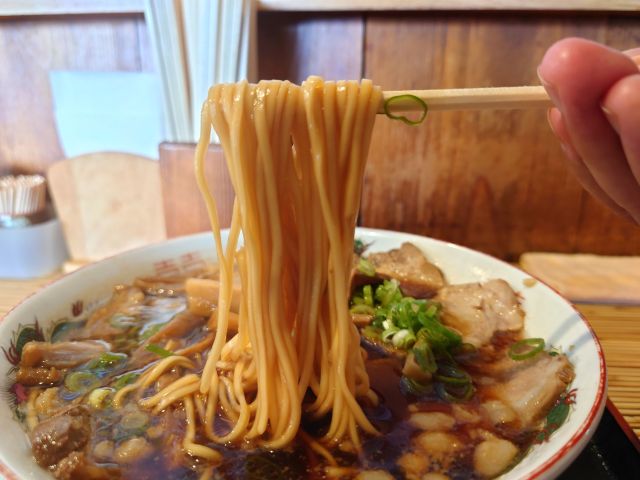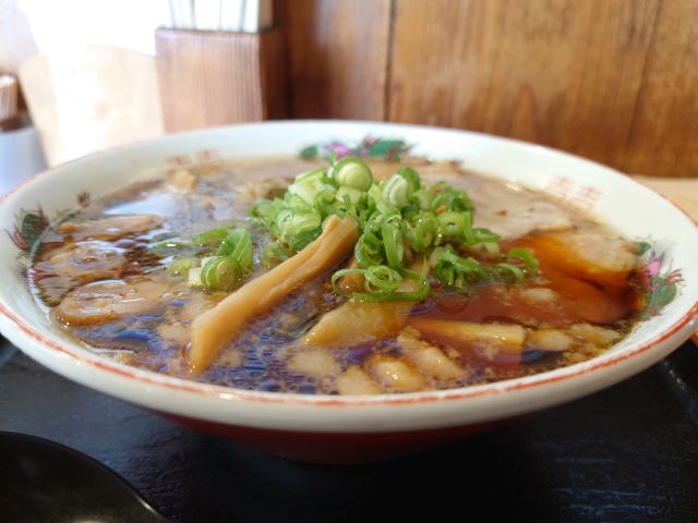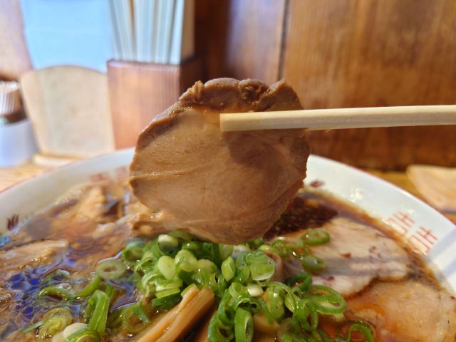 注文はラーメン、大将が厨房ですぐに作ってくださいます。待つこと10分程で着丼、かしわチャーシューと葱がありますので、一見笠岡ラーメンに見えますが...スープはいりこ・削り節・出汁昆布、どれも乾物問屋さんのこだわりが感じられる素材を使われています。濃厚且つ奥行きが凄いですね、海の恵みが口中に広がります。