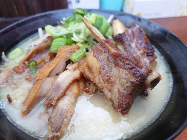 麺は中細ストレート、デフォでいい塩梅の硬さ、適度な加水率でスープに馴染みます。かしわチャーシューは皮と身のバランス良好、旨味しっかり。他の具材はシナチク・長ネギ・青ネギになります。