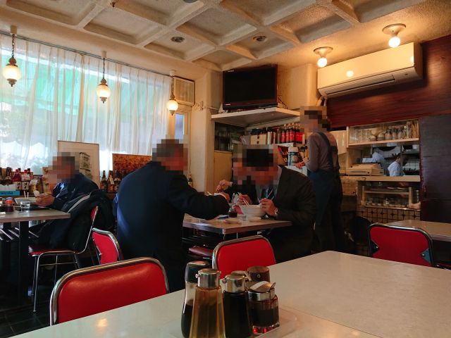 店内は横長空間、テーブル席・小上がり席・カウンター席とフルラインナップ、左奥のテーブル席に入ります。休日なのでオードブルやお弁当のテイクアウトも多いですね。