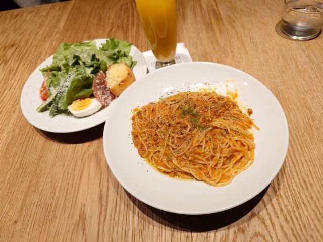 パスタはボロネーゼをチョイス、ひき肉の粒が大きく香味野菜とのバランスが良いですね、さすが自家製です。具材の千両なすが美味、チーズ・卵黄醤油漬けも濃厚で全体バランスも良かったです(*^^*)