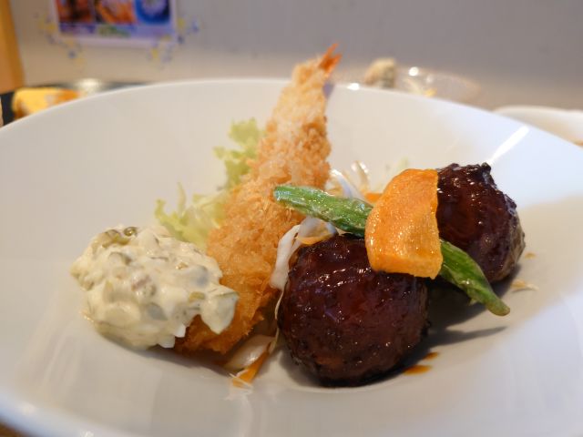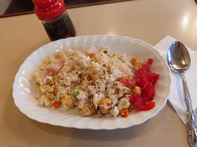 横長皿のやきめし、しっとり食感で具材豊富、いい感じの”おかん焼飯”ですね、薄切りの生ハムが郷愁を感じさせます。適度に塩胡椒効いていますが後半は醤油一注しで完食しました^^