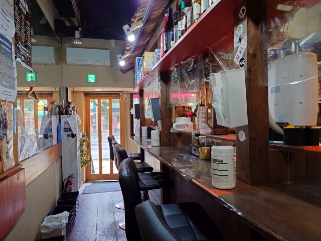 店内は奥に長い構造、カウンター席のみ6席です。おひとり様なのでカウンター席端っこに入ります、料金は前払いになります。