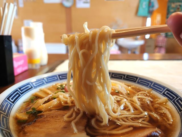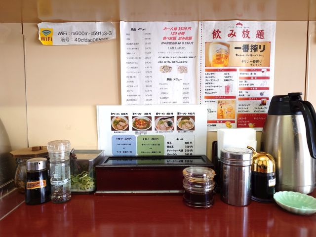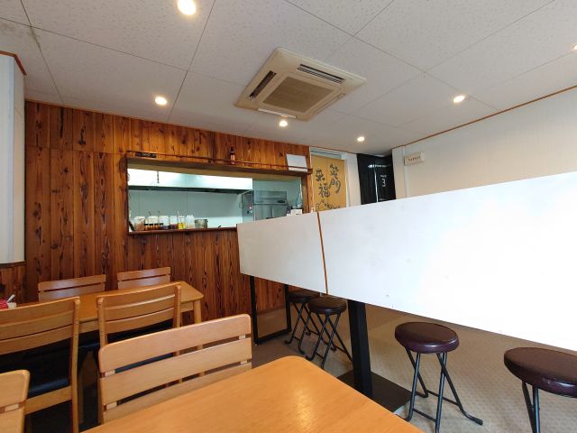 店内は奥に長い構造、厨房・カウンター席・テーブル席が奥にのびます。13時過ぎの訪問で先客3名さんです。