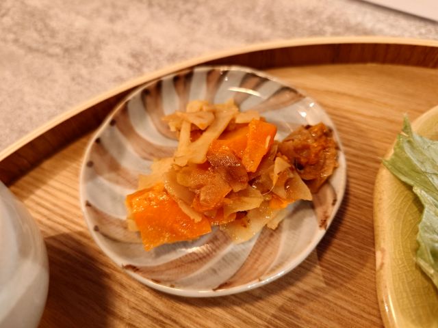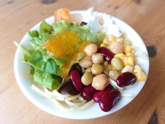 注文は「おむすびプレート」、惣菜(週替り)&味噌汁におにぎり(2個以上)を組み合わせます、おにぎり5種の中から塩麹焼サケと豆乳ツナマヨを選択、待つこと10分程でやって来ました。