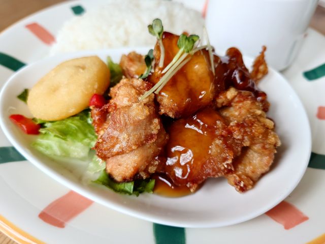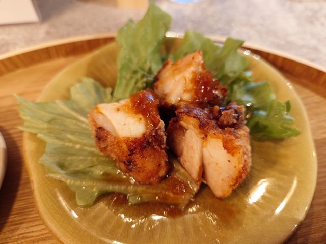 おにぎりは中サイズで握りたて、ふんわり感があって美味しいですね、鮭は塩麹仕様で味に深みあり、ツナマヨは豆乳仕立てで仄かな甘味が素敵です。おかず・味噌汁も上質、鶏肉の竜田揚げは甘酢あんかけ、麹仕様で鶏肉本来の旨さが倍加されています。味噌汁はシンプルで生味噌の風味が素晴らしくおにぎりにぴったりでした(*^^*)