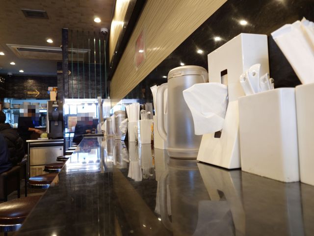 店内は横長構造、奥が厨房でその前に一文字カウンター席、南側がテーブル席になります。13時15分頃の訪問でしたが賑わっていました!!