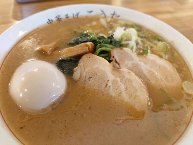 注文は「チャーシューメン(750円)」、待つこと6~7分で着丼...高さのあるビジュアルです。スープは癖のない豚骨醤油、以前は甘み強かったですが今回は全体的にライトな口当たりです。