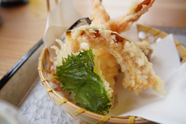 天ぷらはカラッと揚がっていますね、軽い食感でサクサクと頂けます。海老もしっかり2尾で美味しく頂きました(*^^*)