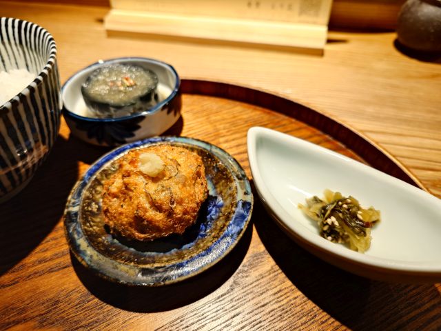 時間を掛けて揚げたメンチカツはジューシーですね、肉汁が溢れます、少量の醤油系タレが掛かっていますが油を良い感じで抑えてくれます。土鍋ご飯は艶々、見事な炊き加減です。優しい味噌汁・がんも・茄子の煮浸しでも最高ですね、見た目普通の定食なんですが全てにこだわりを感じる素敵な定食でした(*^^*)