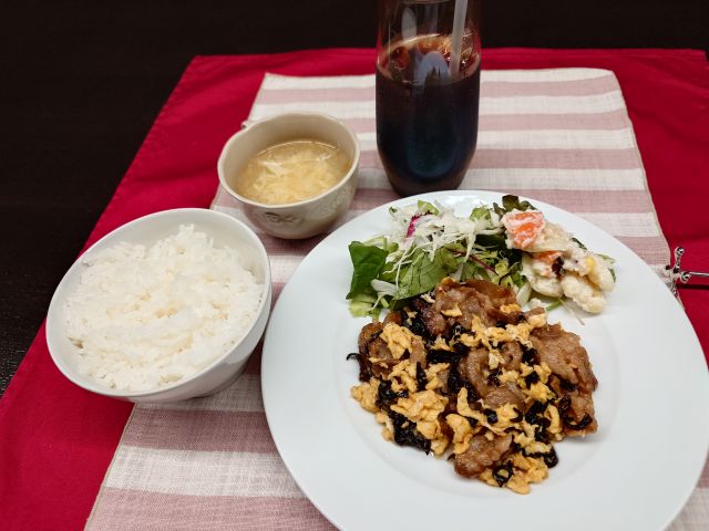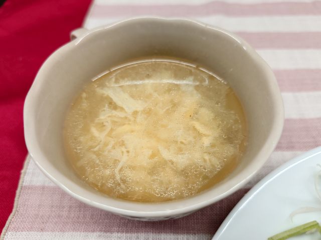 細かく刻まれた木耳と豚肉を卵で炒めています、濃いめの味付けですが素材感はしっかり出ています。卵の炒め具合も最良、ご飯が進みます^^ たまごスープも優しい味わいで美味しかったです。